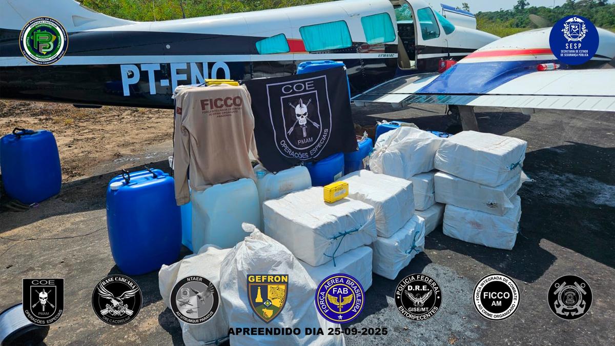 Na sexta-feira (26), forças de segurança apreenderam um avião e cerca de uma tonelada de cocaína em uma área rural…