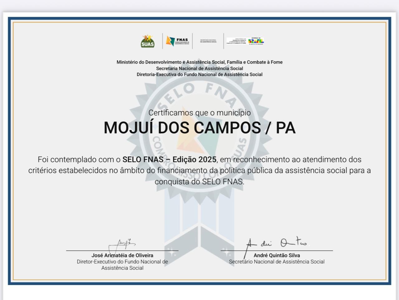 Mojuí dos Campos, no oeste do Pará, foi contemplado com o Selo FNAS – Edição 2025, uma importante certificação concedida…